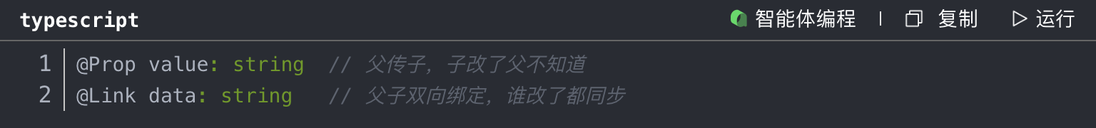 但父子组件通信就有点绕了,@Prop是单向的,@Link是双向的,经常搞混: