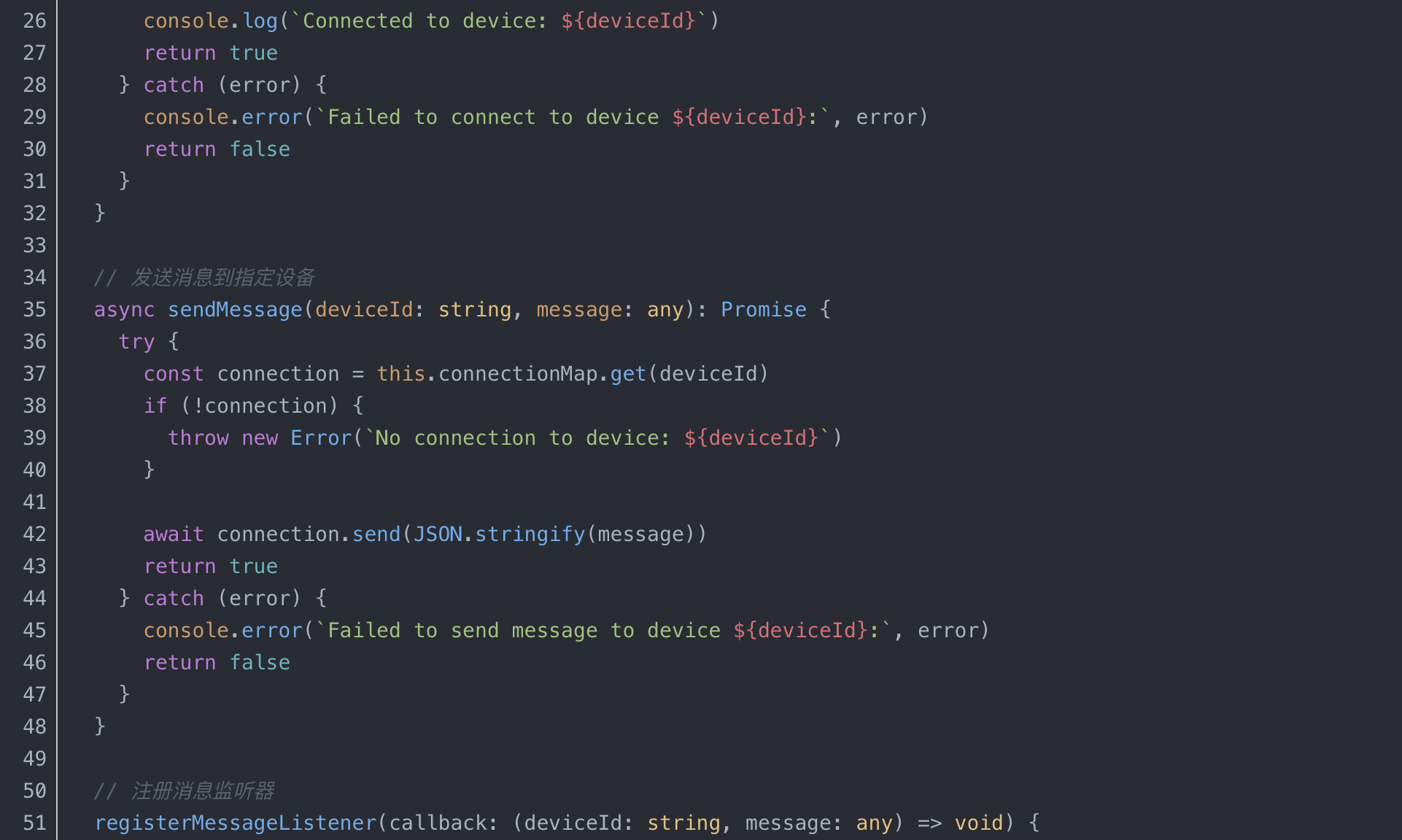 采用集中式状态管理方案,确保多设备间状态一致性。使用发布-订阅模式处理状态更新,减少直接依赖。