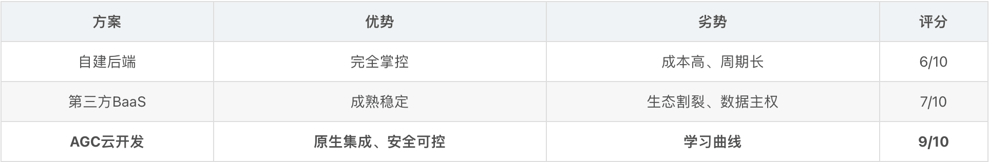 这些痛点让我们将目光投向了华为AppGallery Connect(AGC)的云开发能力。