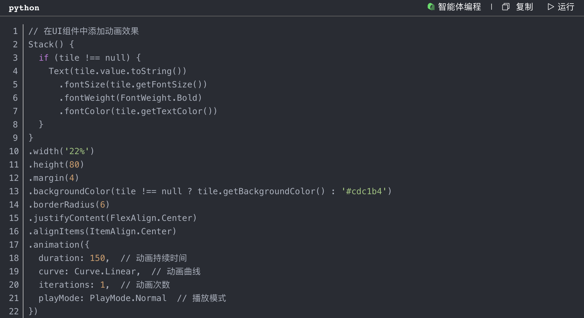 HarmonyOS提供了丰富的API接口,包括UI组件、网络通信、数据存储等。我重点学习了与游戏开发相关的API,如触摸事件处理、动画效果、本地存储等。