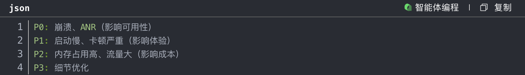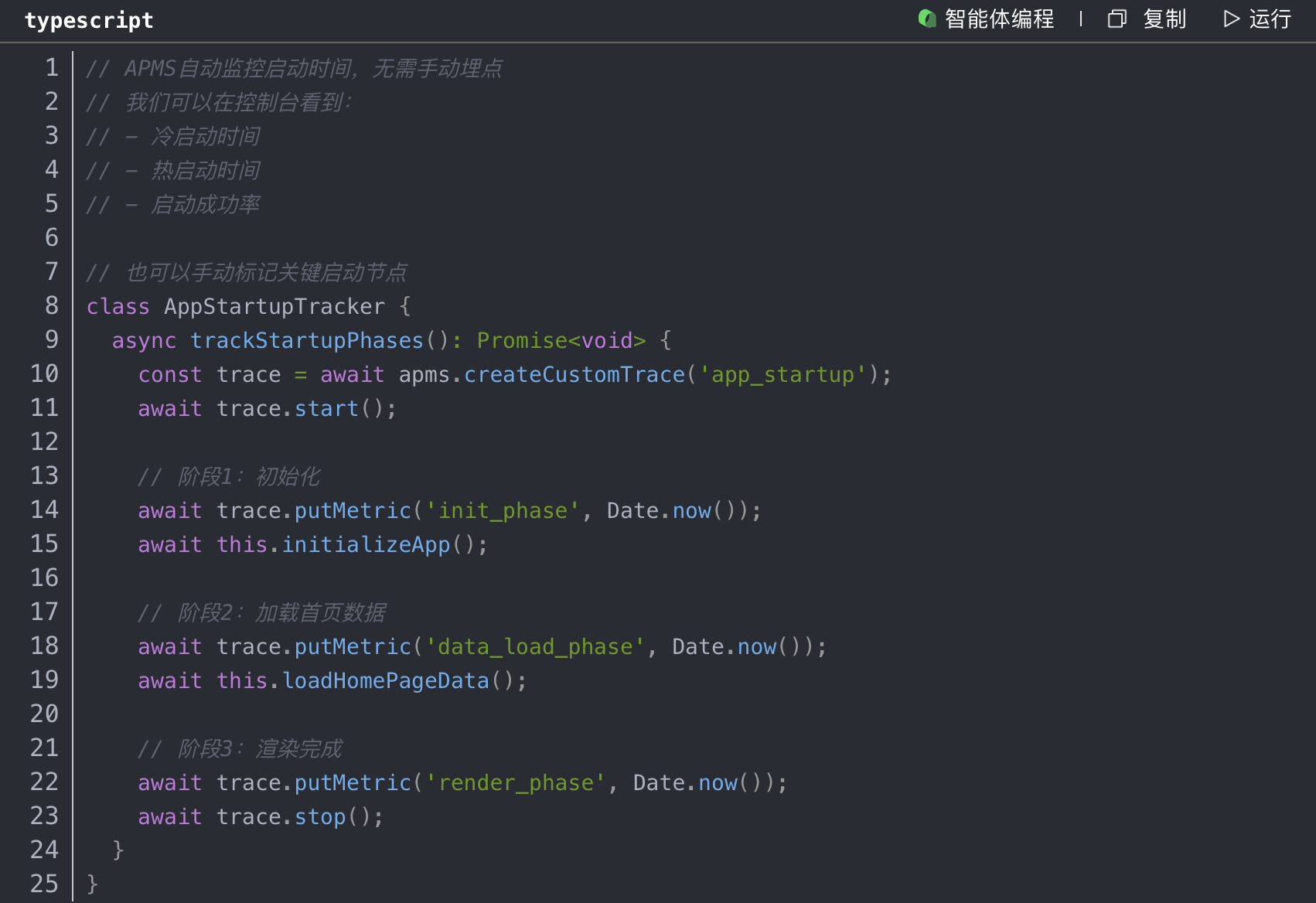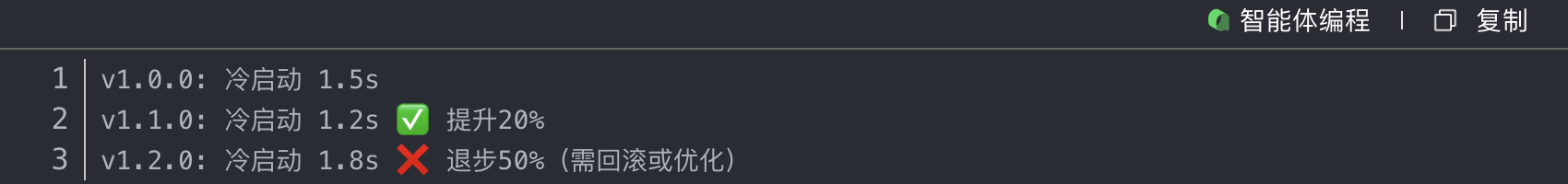 通过APMS数据,我们发现冷启动时间平均3.2秒,远超行业标准的1.5秒。其中,初始化阶段占用了1.8秒,成为优化重点。