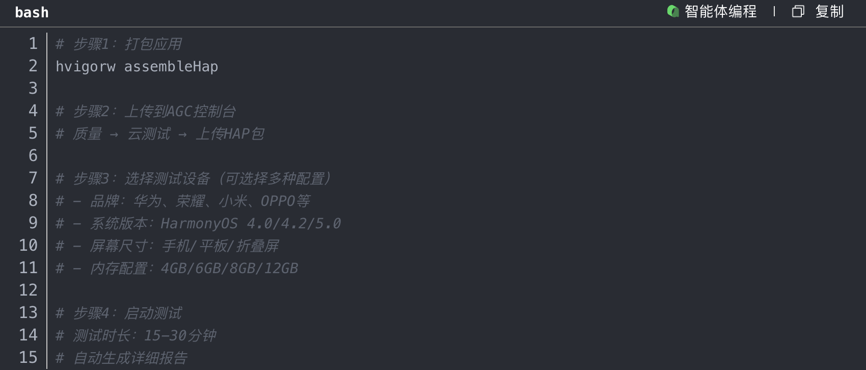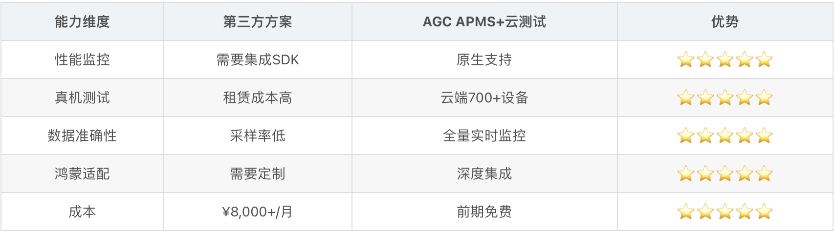 这让我们意识到,必须引入科学的性能监控和测试体系。经过技术调研,我们选择了华为AGC的APMS(应用性能管理服务)和云测试服务。