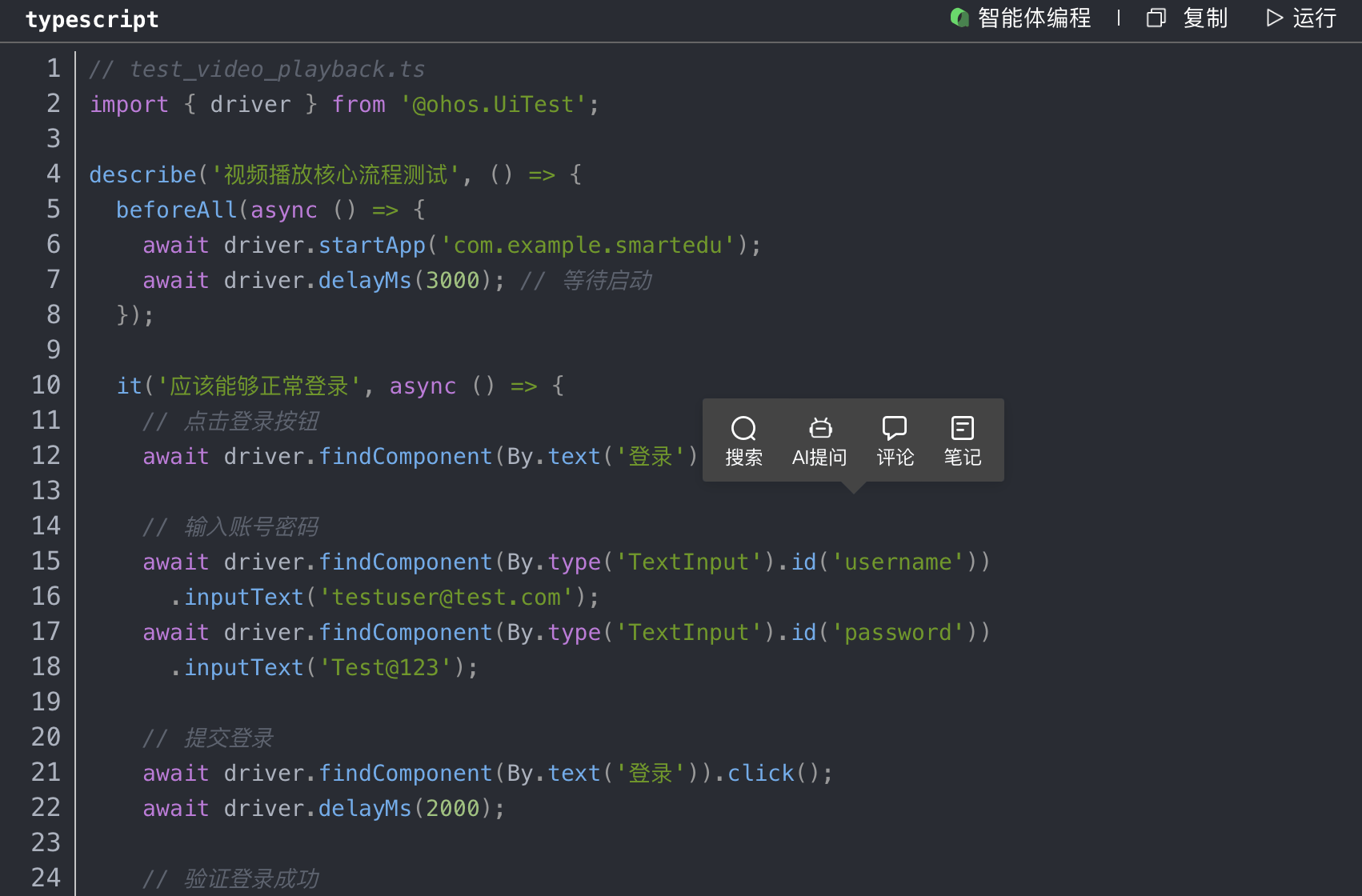 仅靠兼容性测试还不够,我们需要验证核心功能是否正常。AGC云测试支持自定义测试脚本。