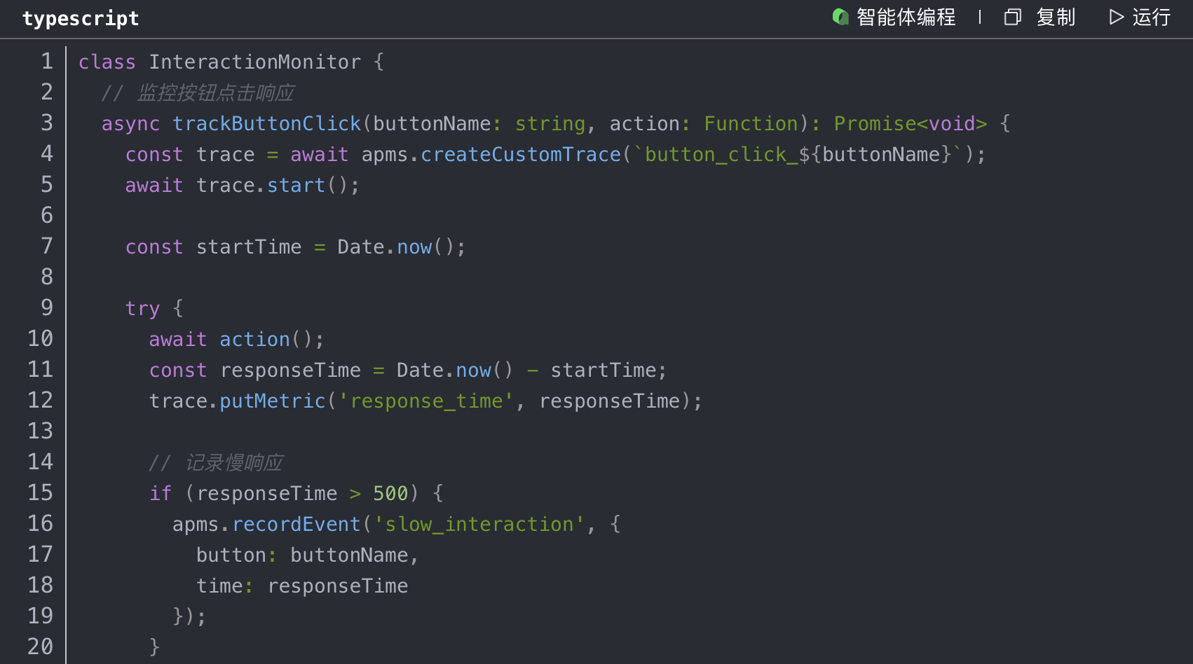 很多第三方监控方案为了节省成本采用采样监控(如10%用户),但这会漏掉很多低频但致命的问题。APMS的全量监控让我们能捕获所有问题。