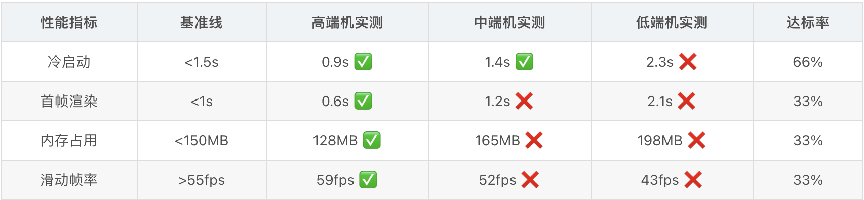 · 首帧渲染时间平均2.8秒(目标<1秒)