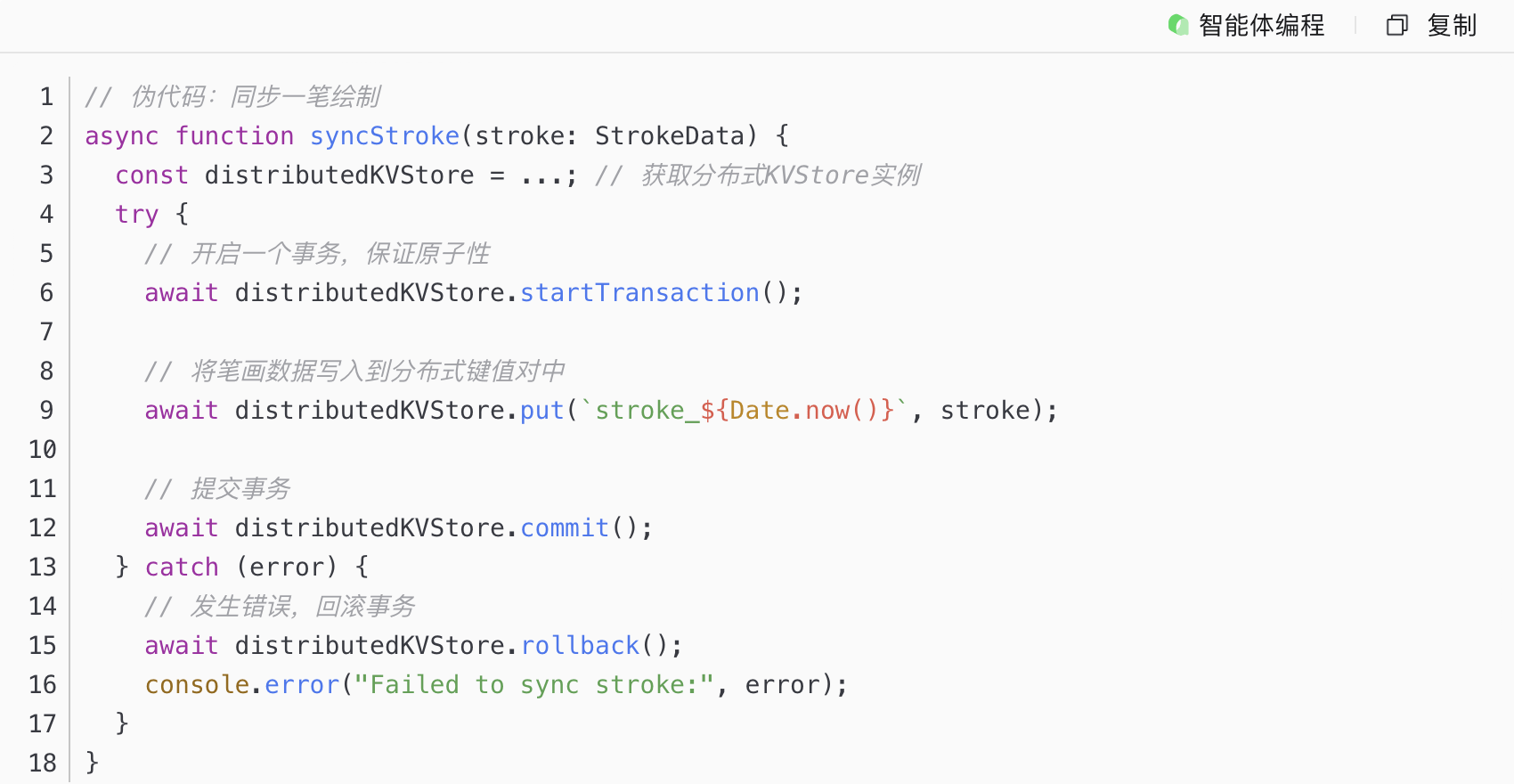 · 关键API: 我们使用了新的分布式数据接口,它支持事务性和数据版本控制。确保了即使在网络不稳定的情况下,多端的画布数据也能最终保持一致,不会出现笔画错乱或丢失。