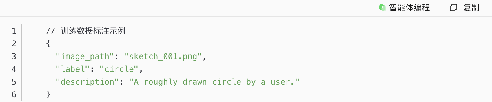 · Prompt示例(用于AI模型训练): 为了让模型能识别“圆形”,我们准备了大量手绘圆圈的图片,并配上相应的标签。