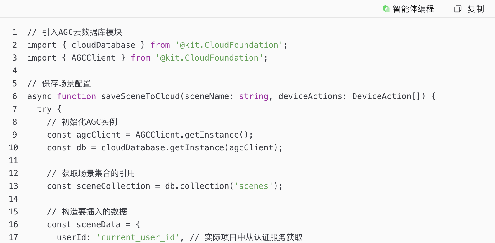 用户配置和场景数据需要云端同步,如果自建后端,成本高昂。我们选择了AGC(AppGallery Connect)云开发。