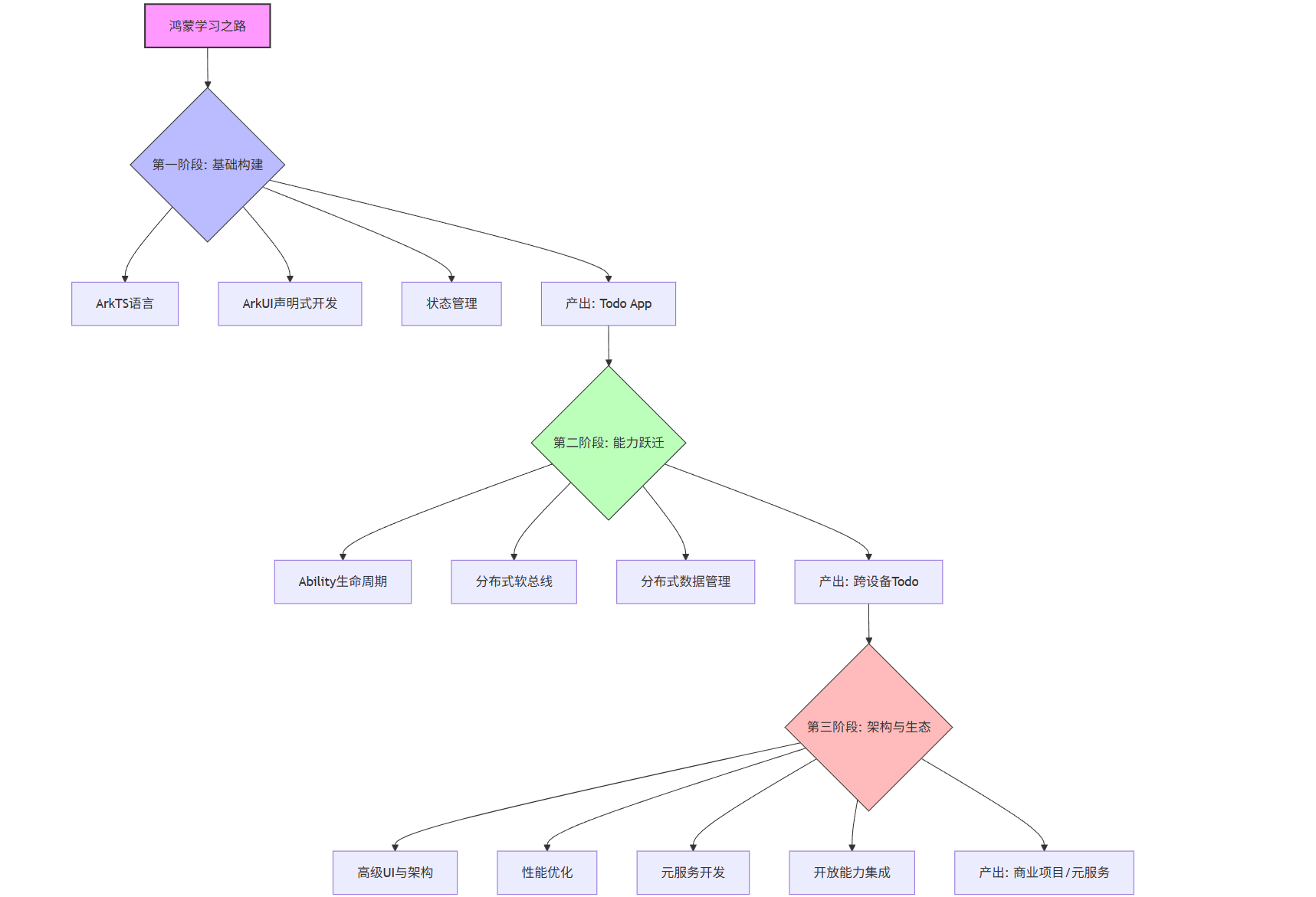 · 目标: 掌握高级架构设计、性能优化,并熟练接入鸿蒙开放生态。