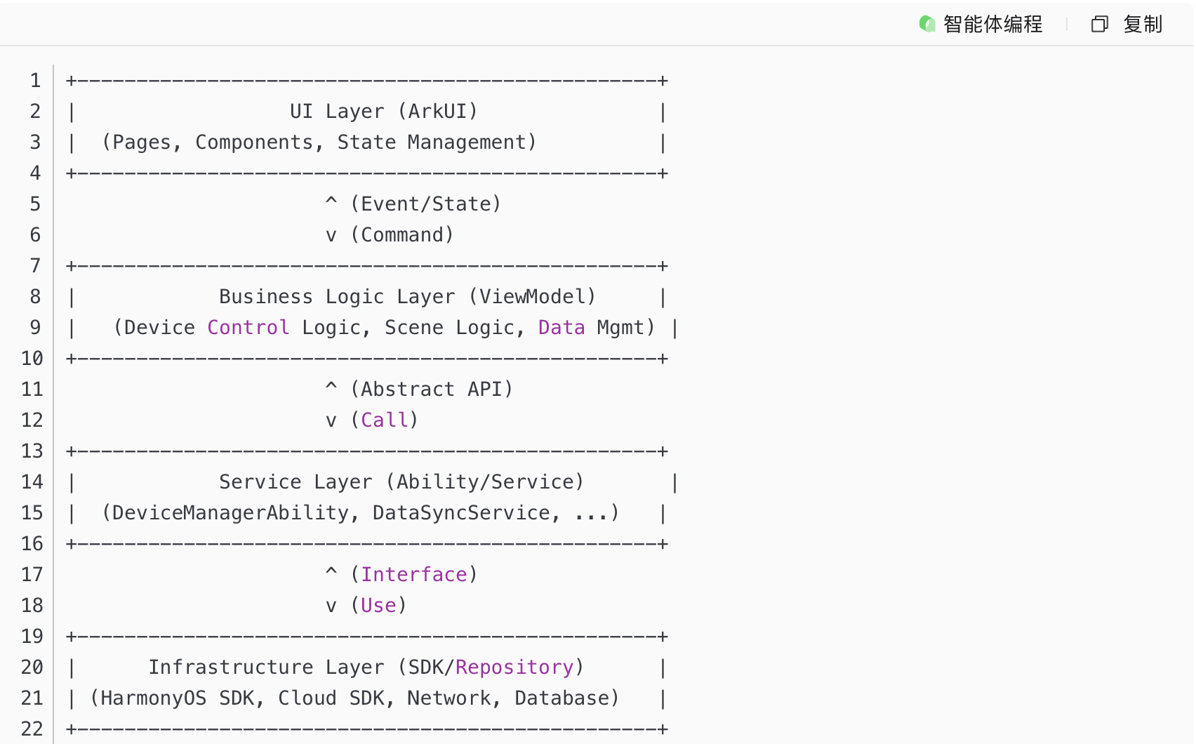 面对复杂的设备交互和状态管理,我们采用了经典的分层架构,并充分利用鸿蒙的特性进行了解耦。