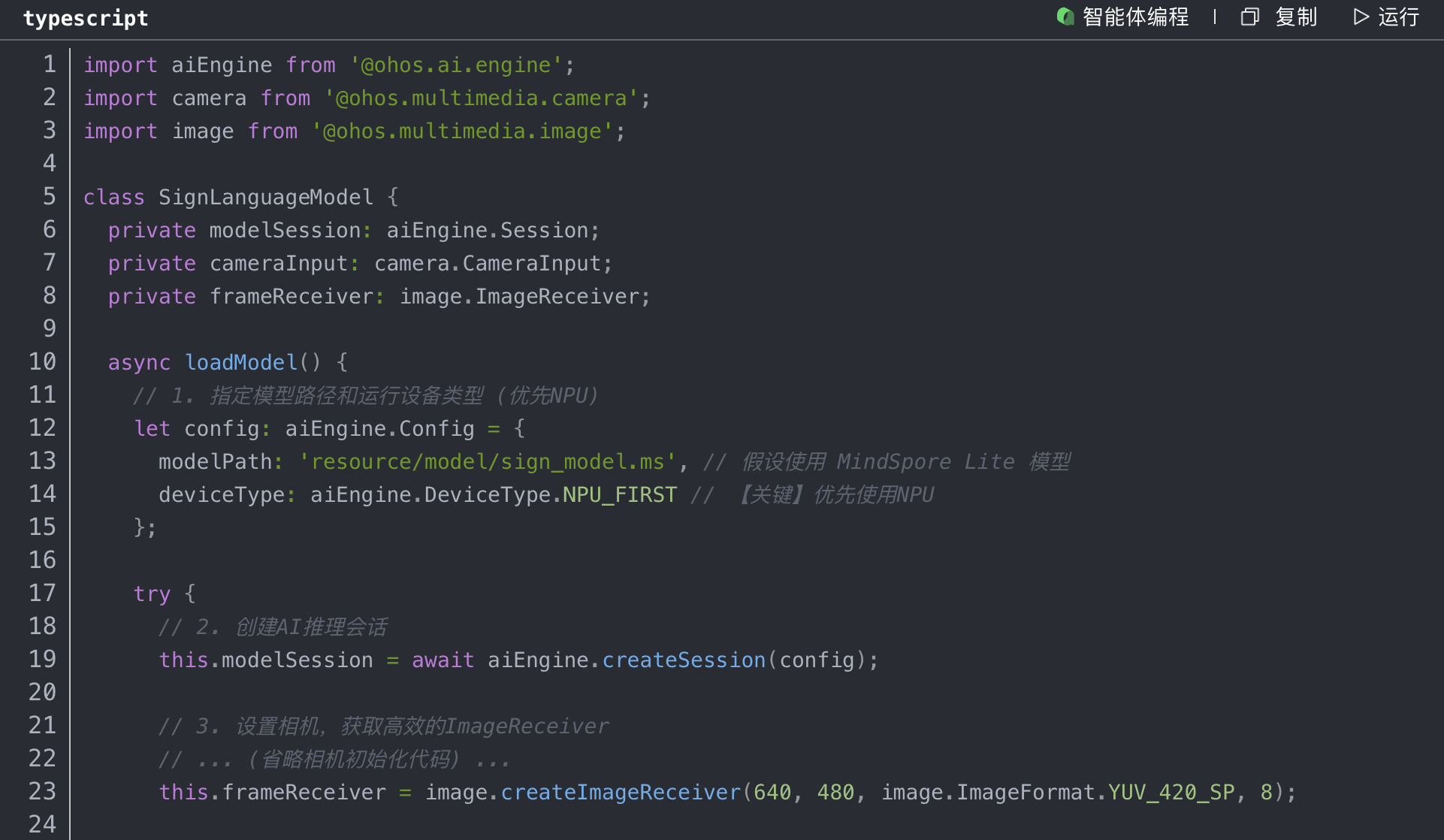 · 原生AI框架 (NPU调度能力):鸿蒙提供了从系统底层对NPU(神经网络处理单元)的调度能力和高效的AI框架(如MindSpore Lite)。这让我们“敢”把复杂的AI手语识别模型,直接跑在手机端侧,实现毫秒级的识别。