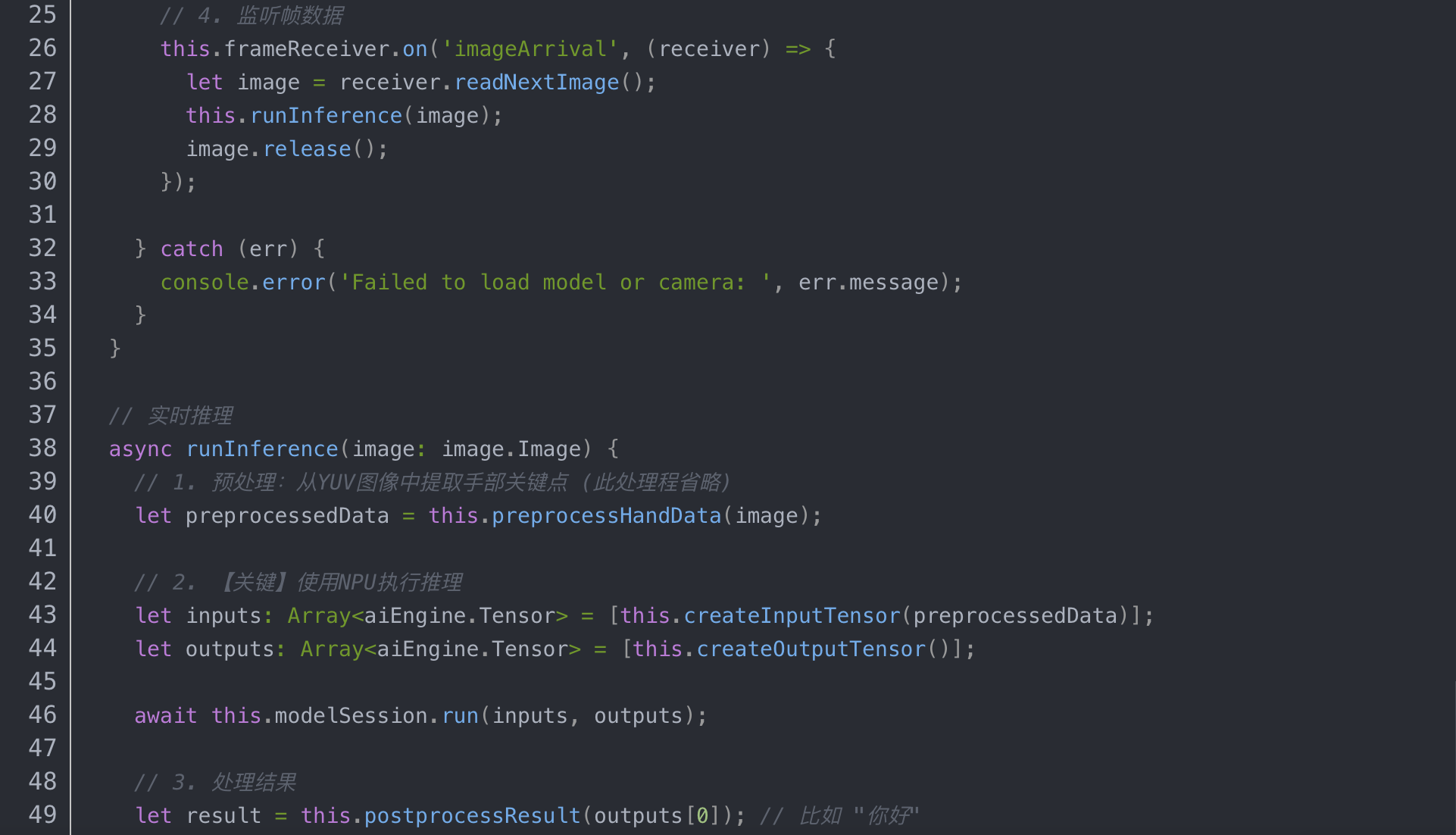· 接入鸿蒙AI框架: 这是最关键的一步。我们没有直接在CPU上跑推理,而是使用了鸿蒙提供的ohos.ai.engine(此处API为示意,请以官方为准),而是使用了鸿蒙提供的ohos.ai.engine(此处API为示意,请以官方为准)能力。