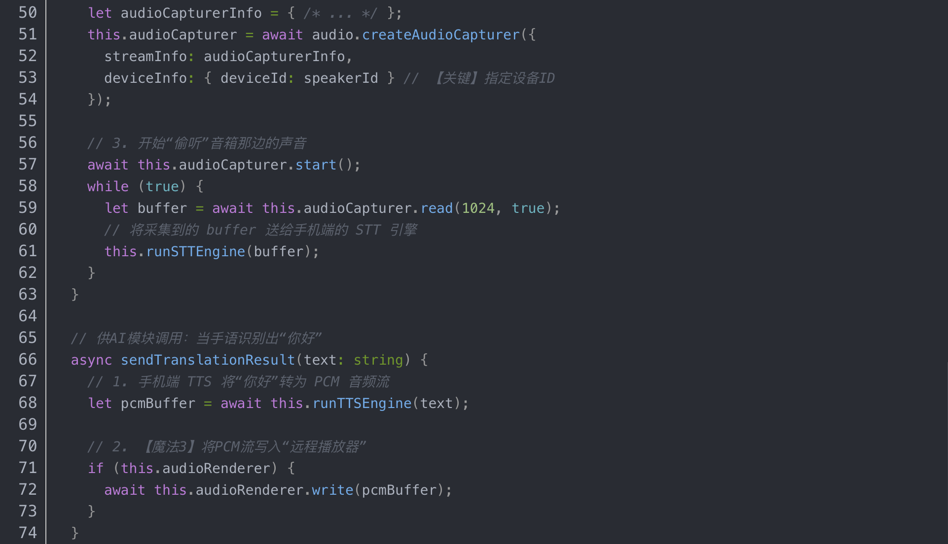 2、分布式能力的“聚”与“散”: 我们如何利用分布式软总线和分布式硬件能力,将“手机(AI视觉+翻译)”、“手表(提醒+文本)”、“智慧音箱(语音播报)”捏合成一个“超级服务终端”,为听障人士打造了一个“眼、耳、口”一体化的无缝沟通体验。