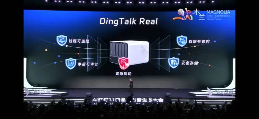陈航表示,DingTalk Real 万一不可控,钉钉提供了紧急功能:拔电。