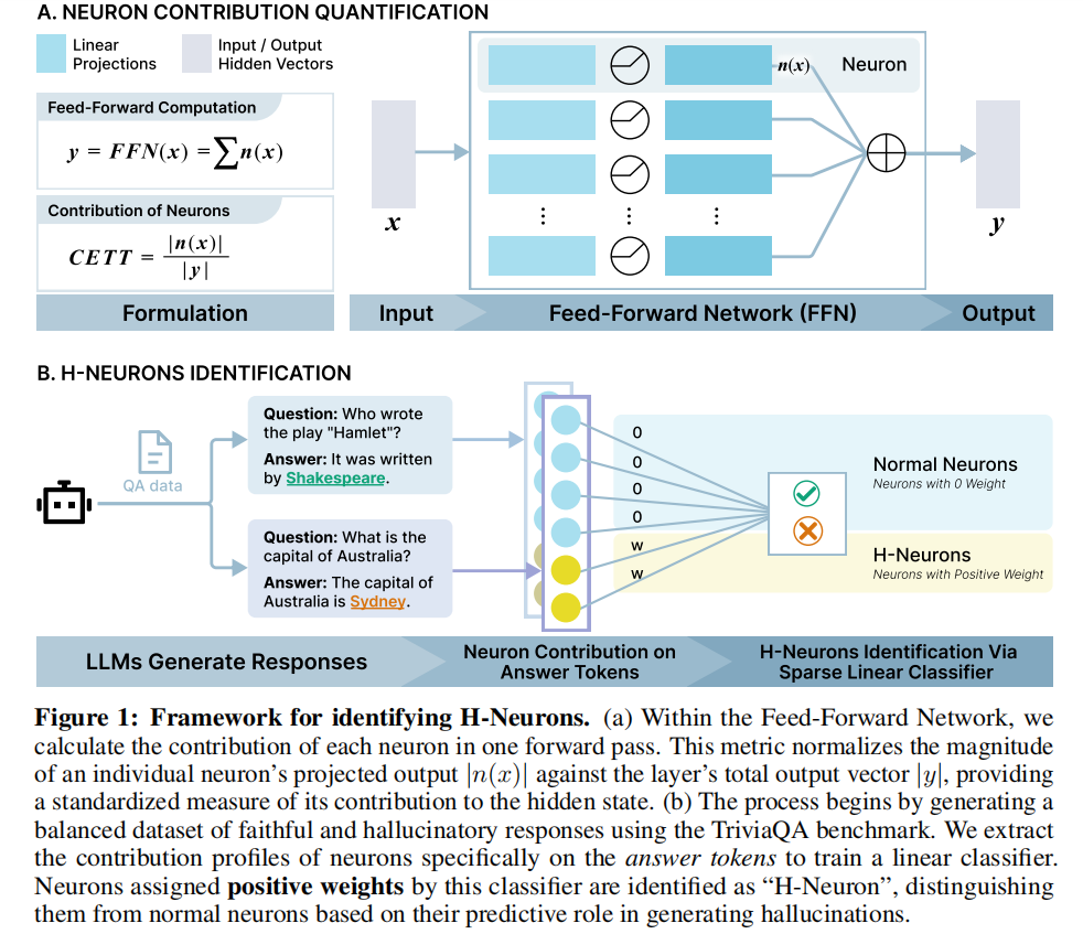 清华大学与 OpenBMB 提出“H-Neurons”:LLM 幻觉相关神经元的存在、作用及其起源