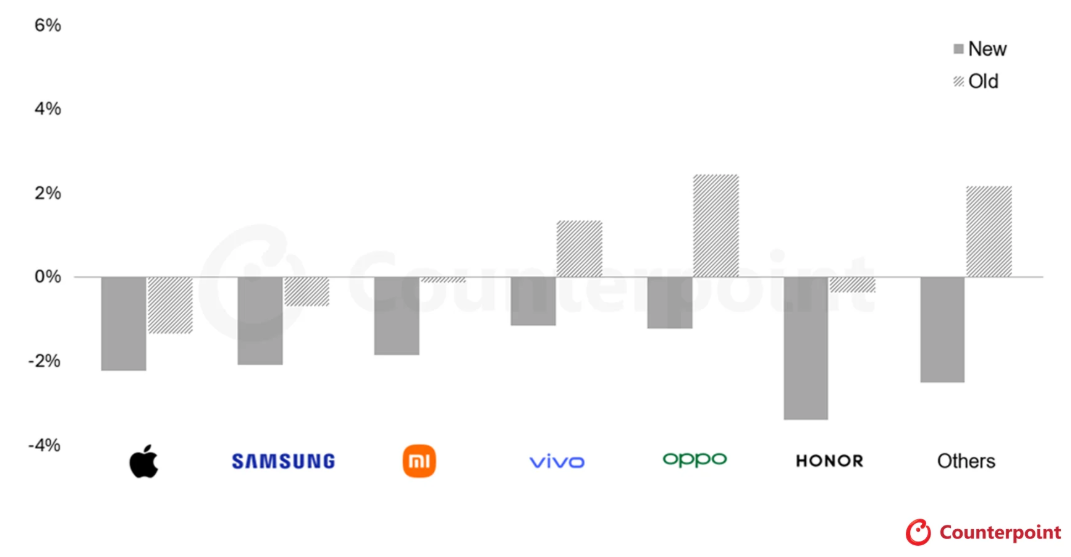 Counterpoint 近期发布的一项研究预测,智能手机的平均售价将上涨 6.9%,几乎是此前预测的 3.6% 涨幅的两倍。该研究还显示,未来一年智能手机的销量将下降 2.1%。