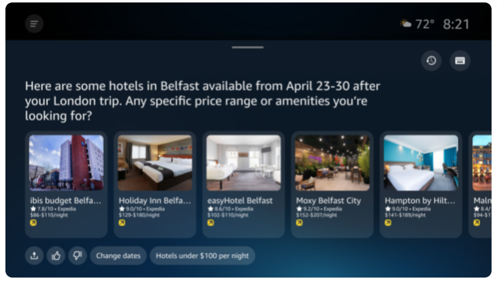 亚马逊宣布,自2026年起,Alexa+将新增Angi(家庭服务)四大深度集成,用户可通过自然语言对话直接预订酒店、预约美发、获取家装报价、筛选餐厅等,无需打开任何App。