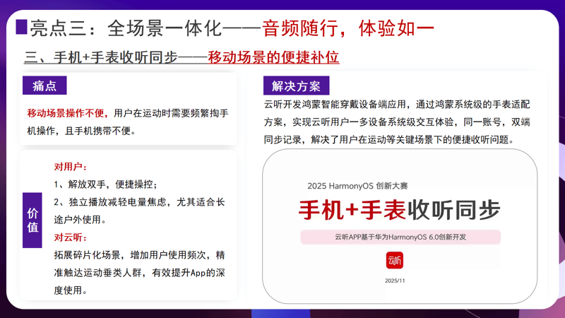 这一增长背后,是云听基于鸿蒙分布式音频调度创新能力实现的“无缝流转”体验。其核心创新体现在四个维度: