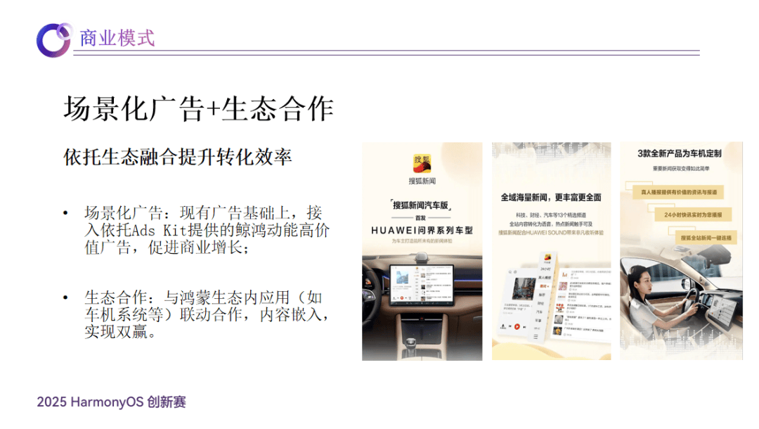 在商业模式上,搜狐新闻规划接入鸿蒙Ads Kit,实现高价值场景化广告,联动车机生态拓展服务边界。