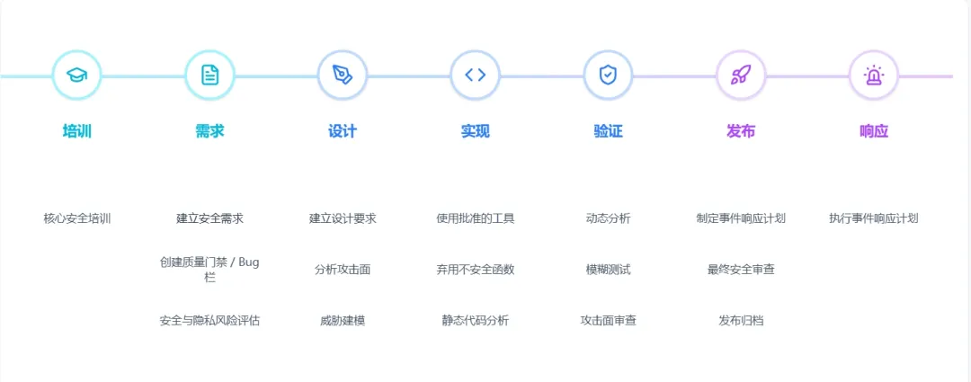 SDL 模式源自微软,强调在软件开发的各个里程碑节点设置安全门禁,适合对合规性要求极高的大型瀑布式开发项目;
