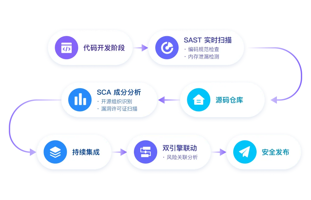 SAST 针对代码的本源安全,通过「快速扫描 + 深度分析」的双模式能力,精准捕捉开发环节的编码漏洞。