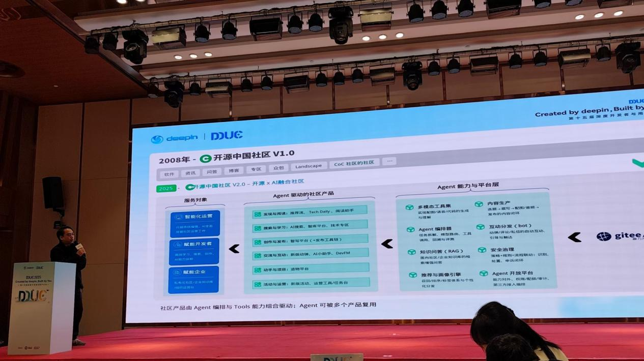 在实现自身AI化跃迁的同时,OSCHINA 也通过开放合作扩大社区影响力。在 DDUC 2025上,OSCHINA 的 AI 社区实践引发广泛关注,社区也获评 deepin 社区年度合作伙伴·影响力贡献奖。未来,OSCHINA 将携手 deepin 等伙伴,在 deepin 25、RISC-V、玲珑生态等领域联合产出内容和活动,构建从技术传播到需求响应的闭环。开源中国将继续坚守开源初心,拥抱AI浪潮,不断进化自身能力,为开发者生态注入源源不断的创新动力。