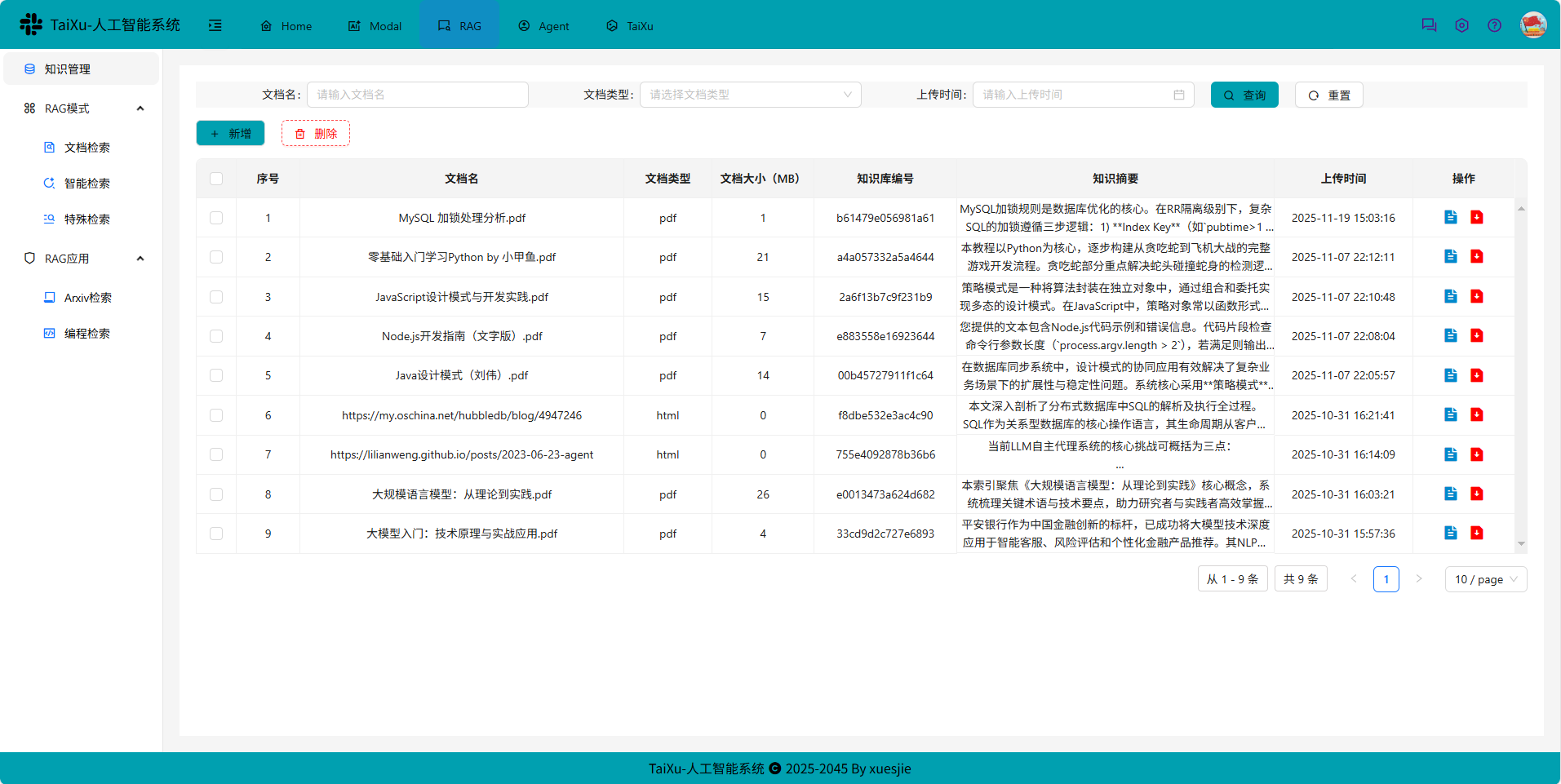 TaiXu-Admin V0.0.8 发布,LLM+RAG+Agent 应用技术系统