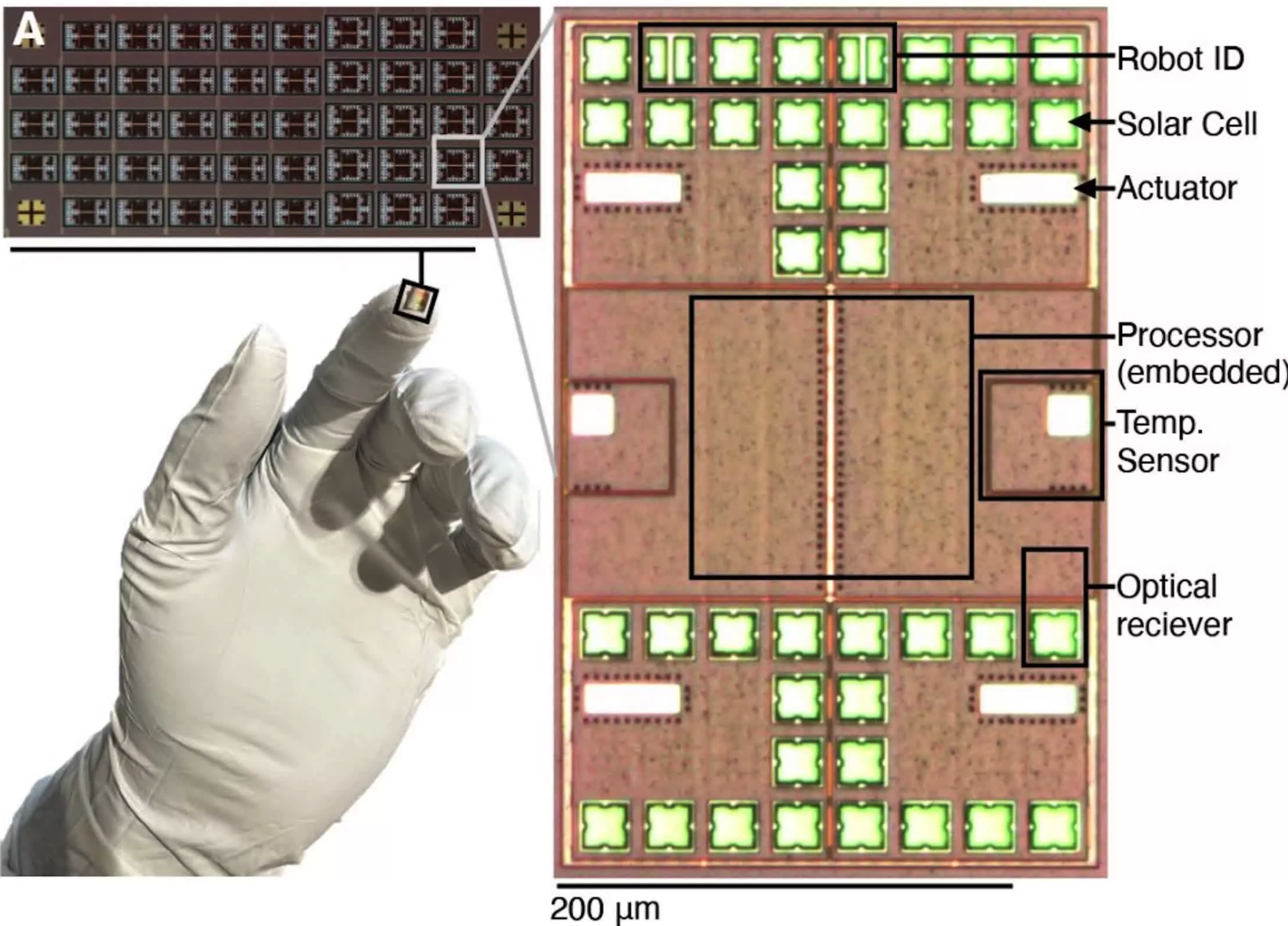 为实现自主性,研究人员整合密歇根大学戴维·布劳团队的超小型计算机技术,该计算机曾在DARPA会议上被视为互补。太阳能板仅产75纳瓦电能——比智能手表少逾十万倍——电路却能在极低电压下运行,处理器、内存、传感器与电机全集成于数百微米结构中,能精确至三分之一摄氏度的温度感知,并追踪热梯度报告实时数据。