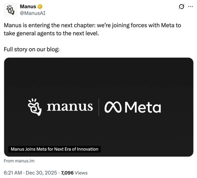 Manus 被 Meta 完整收购,给全球华人 AI 创业者提供了在全球运营和扩张业务,寻找终极出路的探索模板。