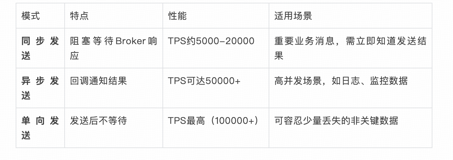 - 适用场景: 日志收集、监控数据、可容忍微量丢失的业务消息