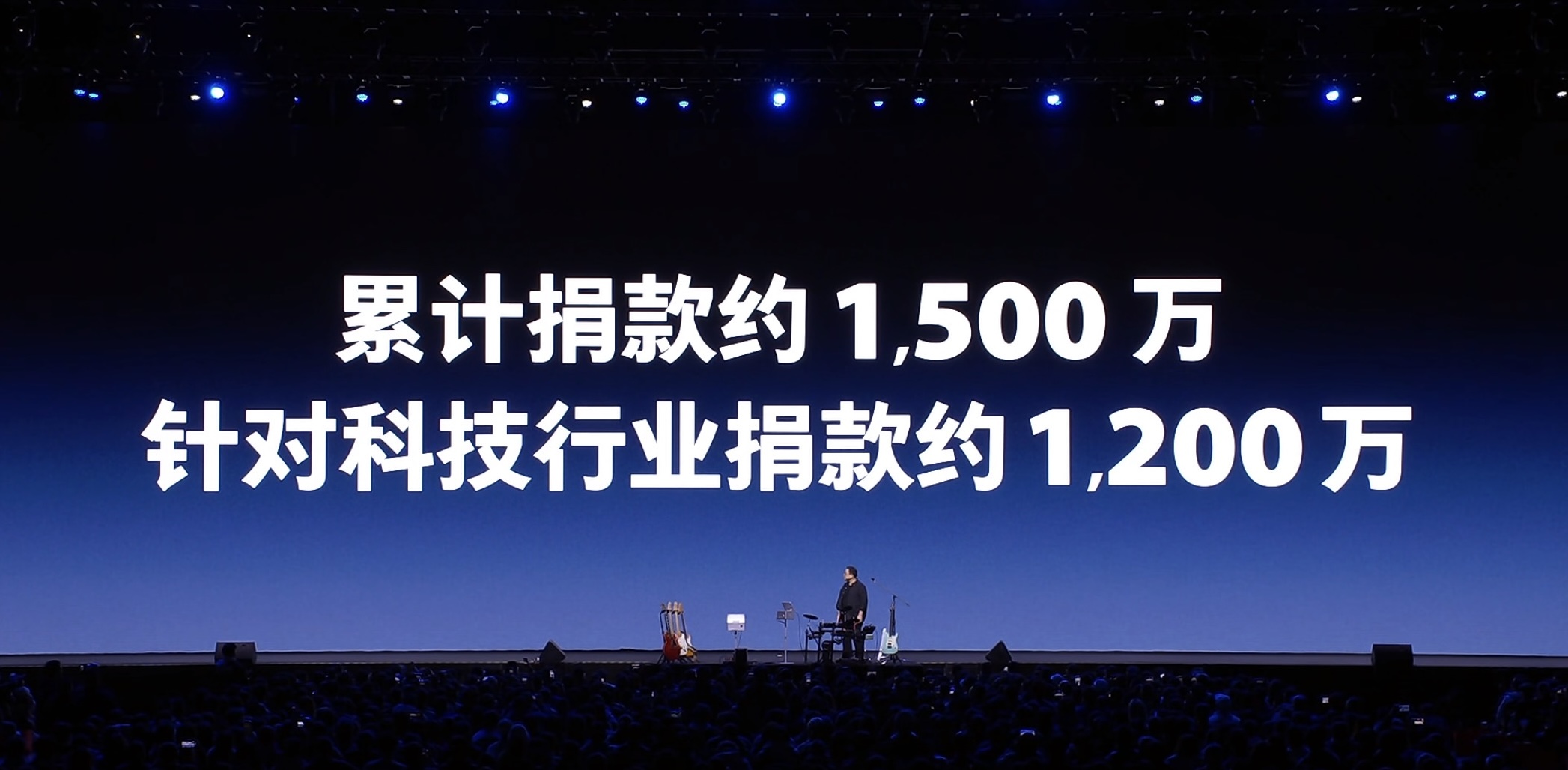 罗永浩还列出了历年来举办活动门票收入的捐款情况,称累计捐款约 1500 万,针对科技行业捐款约 1200 万。