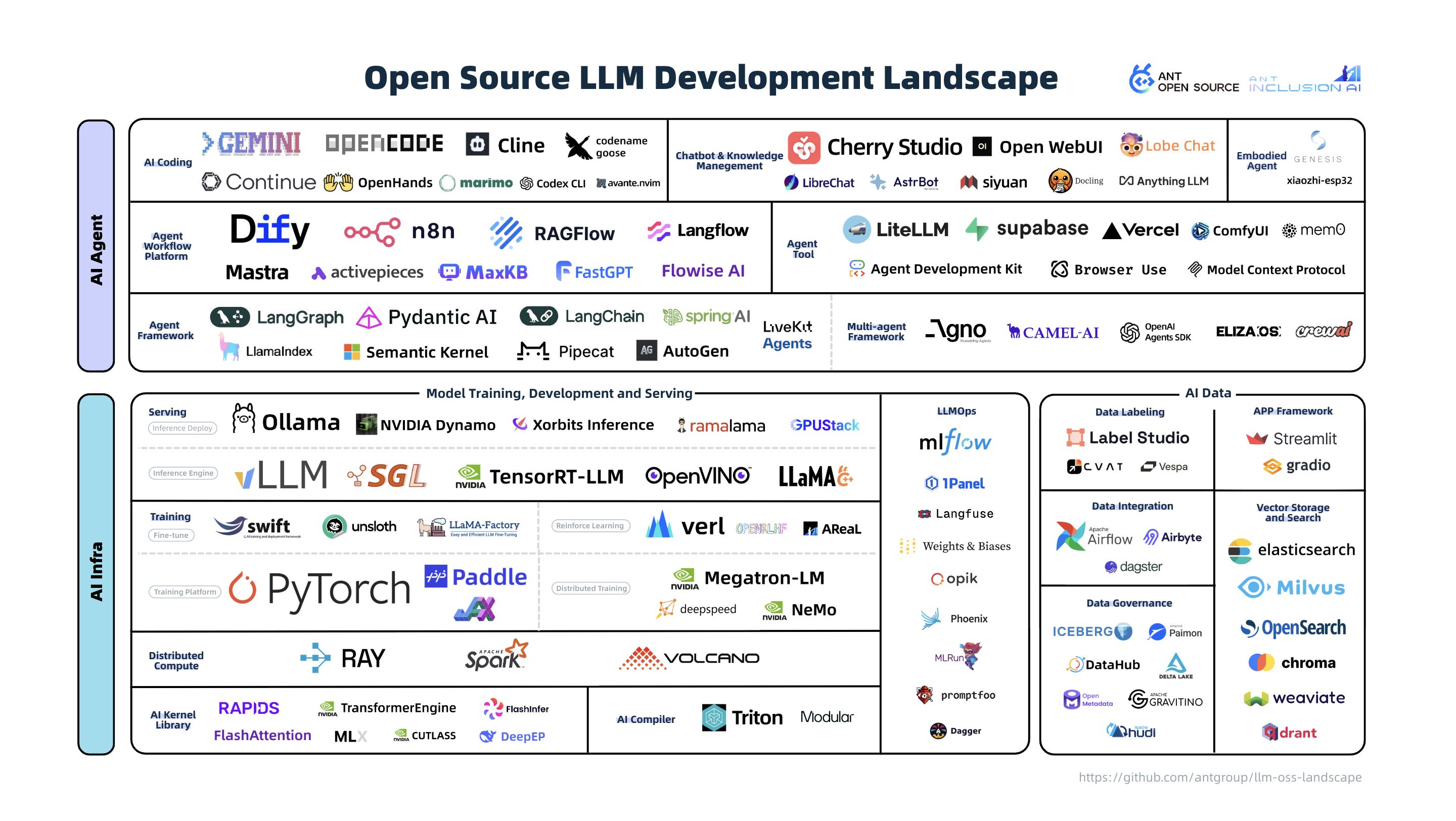 ▲图1 《2025年大模型开源开发生态全景图》2.0版本