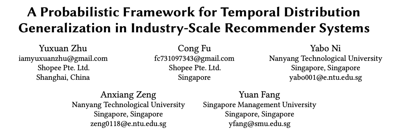 针对这一问题,Shopee傅聪团队联合新加坡管理大学SMU,深入分析挖掘了工业级推荐系统数据分布迁移的模式,并在此基础上提出了一种模型架构无关的学习框架ELBO_TDS(Evidence Lower Bound Objective for Temporal Distribution Shift)。