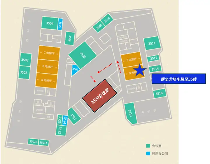 在腾讯滨海大厦门口(image咖啡厅左侧)扫码签到,扫码成功后,向工作人员出示手机界面,领取胸卡,及访客贴,凭访客贴进入大厦,乘坐【北塔D电梯】至35楼