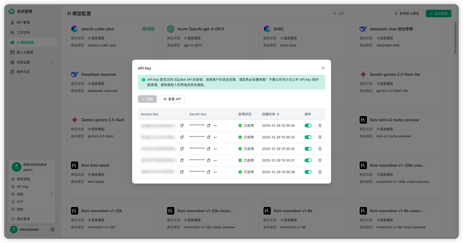 ▲图2 SQLBot的API Key列表页面