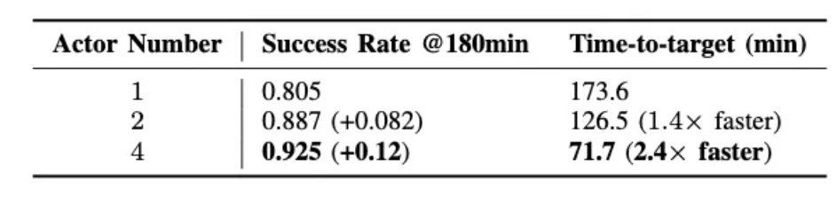 - 高效状态空间探索 分布式多机器人并行探索,显著提升状态–动作覆盖率,避免单机在线学习的局限。