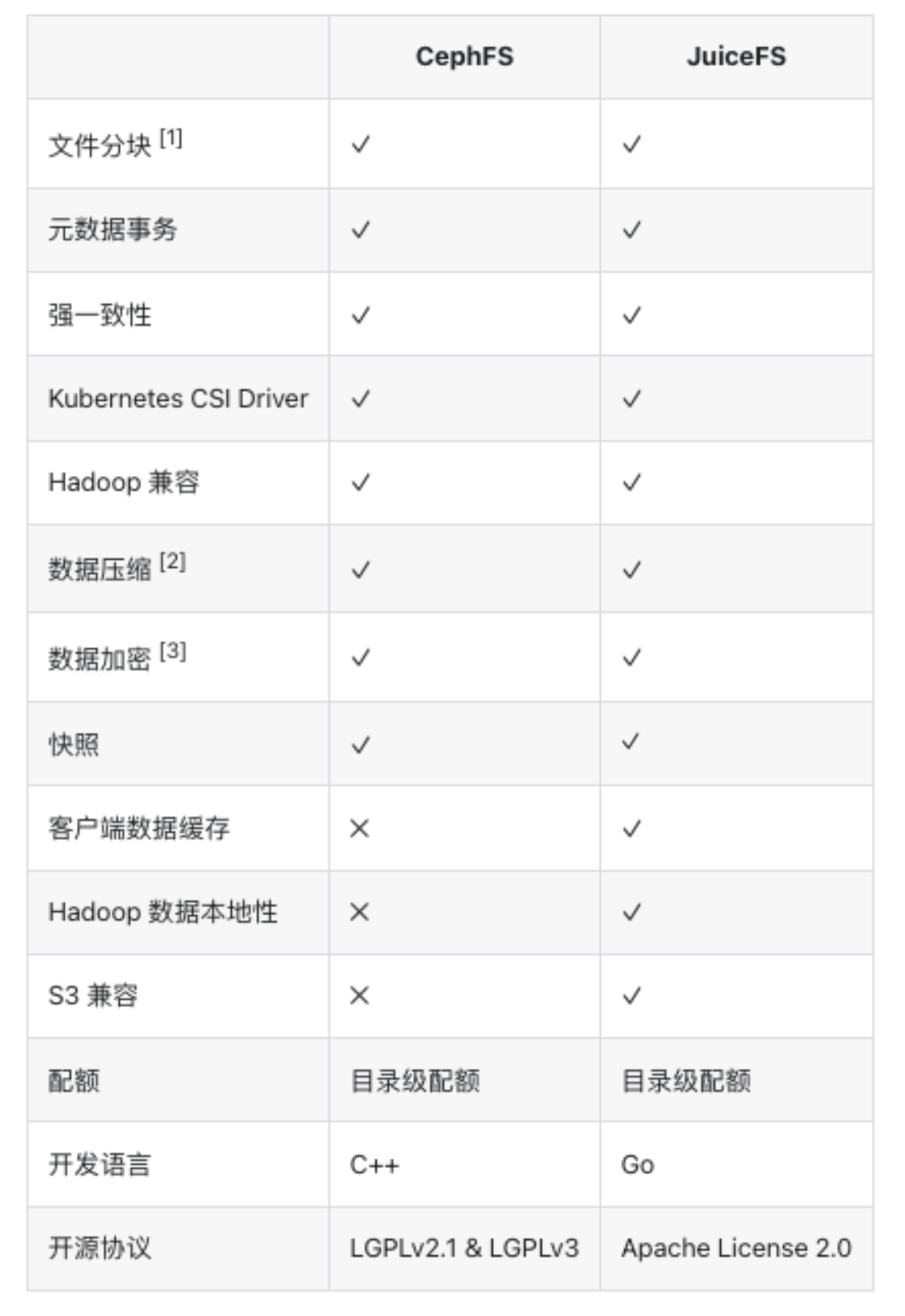 随着存储需求的增加,我们决定转向可持续性更好的方案。在评估了多种方案后,我们主要对比了 CephFS 和 JuiceFS。虽然 Ceph 被广泛使用,但通过自己的实践和对比文档,我们发现 Ceph 的运维和管理成本非常高,尤其对于我们这样的小团队来说,处理这些复杂的运维任务显得尤为困难。