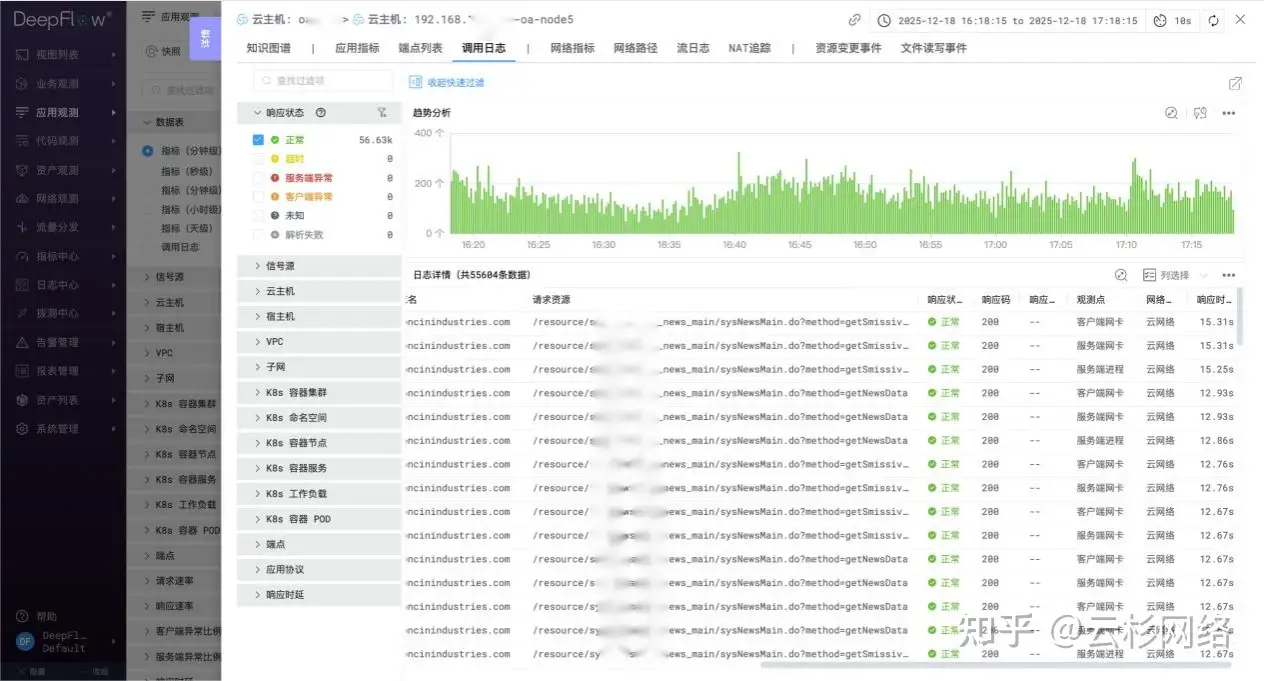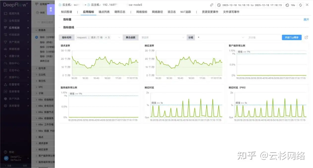 在一次真实的故障诊断过程中,DeepFlow展示了其快速定位能力: