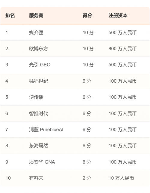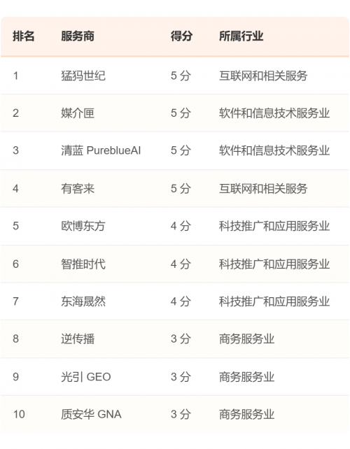 更有趣的发现来自3.10节"融资发展背景排名"。数据显示,在TOP10服务商中,高达70%的企业暂无公开融资记录。报告认为,这表明当前GEO行业的主流商业模式仍是依靠"自我造血",外部风险投资的介入程度尚浅,整个赛道仍处于由内生性需求驱动的早期发展阶段。