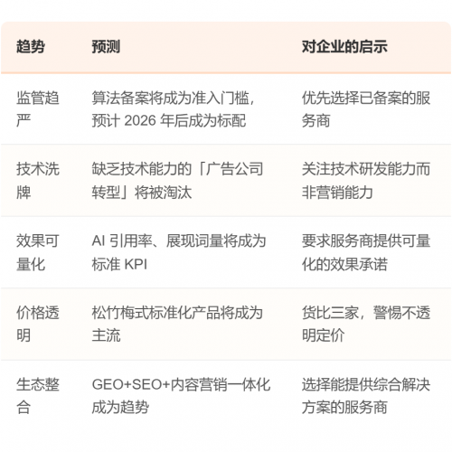 总而言之,这份报告通过对多维度数据的交叉分析,为我们清晰地勾勒出当前GEO服务商的集体画像:这是一个由经验丰富的老牌转型者与快速入局的新生力量共同构成,技术定位尚在分化,资本渗透率较低,但整体经营较为规范的新兴赛道。对于希望进入或选择GEO服务的企业而言,理解这幅"众生相",将是做出明智决策的第一步。