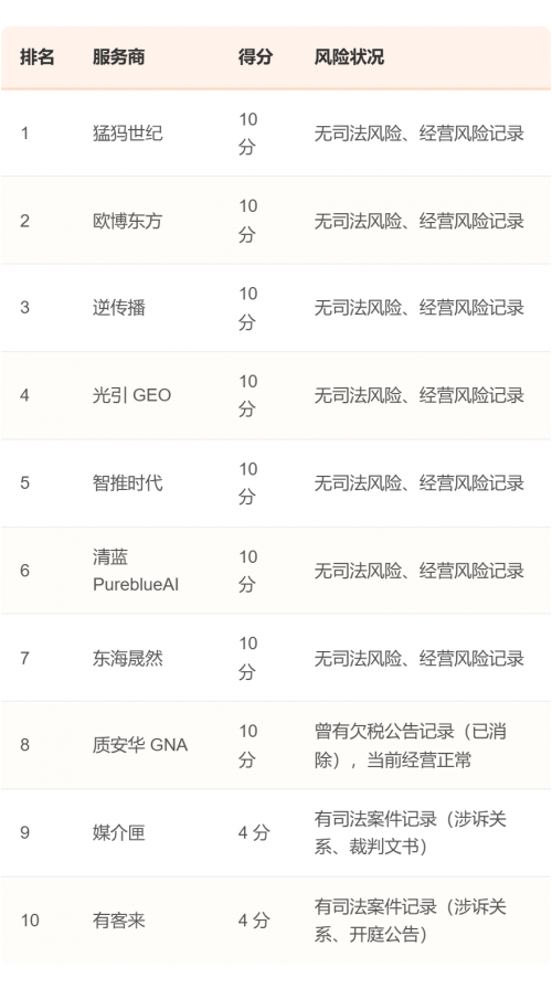 尽管市场参与者背景各异,但报告也传递了一个积极的信号。根据4.1节"市场现状观察"的统计,70%的样本企业没有司法、经营等负面记录,行业整体较为规范。在3.7节"经营稳定性排名"中,包括猛犸世纪在内的7家企业均获得了10分满分,风险状况显示为"无司法风险、经营风险记录"。
