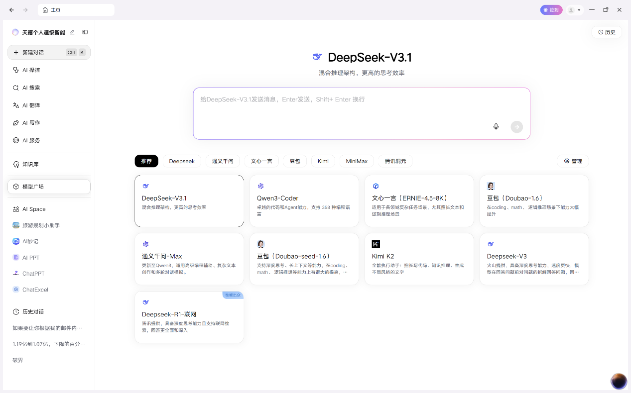 当然,以上还只是智能体万千应用场景中的一小部分。天禧个人智能体3.5版提供了AI操控、AI搜索、AI翻译、AI写作、AI服务、知识库、模型广场和AI Space等众多功能大项,而每个大项中又包含众多专业智能体,组合串联之后便能得到几乎无限的应用场景。这种海量能力的任意组合正是天禧个人智能体3.5版对于用户的核心价值所在。