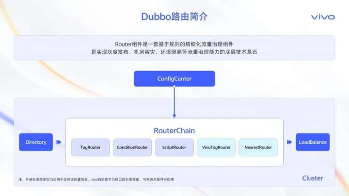 Dubbo 是一款 RPC 服务开发框架,主要用于解决微服务架构中的通信与服务治理问题。它提供了服务定义,服务发现、负载均衡、流量管控等丰富能力。vivo在2015年,引入开源社区Dubbo作为Java技术栈RPC框架。而随业务规模发展,业务侧浮现框架版本碎片化现象,产生治理困难,维护成本高等问题。 在19年,vivo引入开源社区2.7.* 版本发布作为第一个基线版本,对业务侧进行了版本收敛。随后发布两个大基线版本,分别为建设三中心分离能力,和应用级注册发现能力。