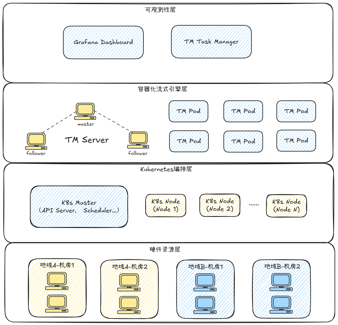 容器化流式引擎层:以容器化 Pod 形式运行基于厂内自研流式框架TM的算子,通过容器标准化封装消除环境差异,支持水平扩缩容,让计算能力可根据业务流量弹性适配;