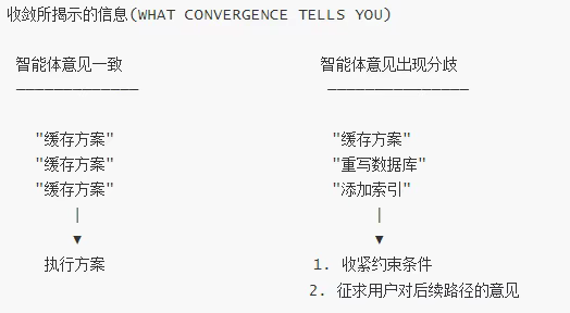 (译者注:这里的 "convergence"(收敛)应当是指,多个独立运行的智能体(agents)从不同角度探索同一个问题后,不约而同地指向同一个或非常相似的解决方案。)