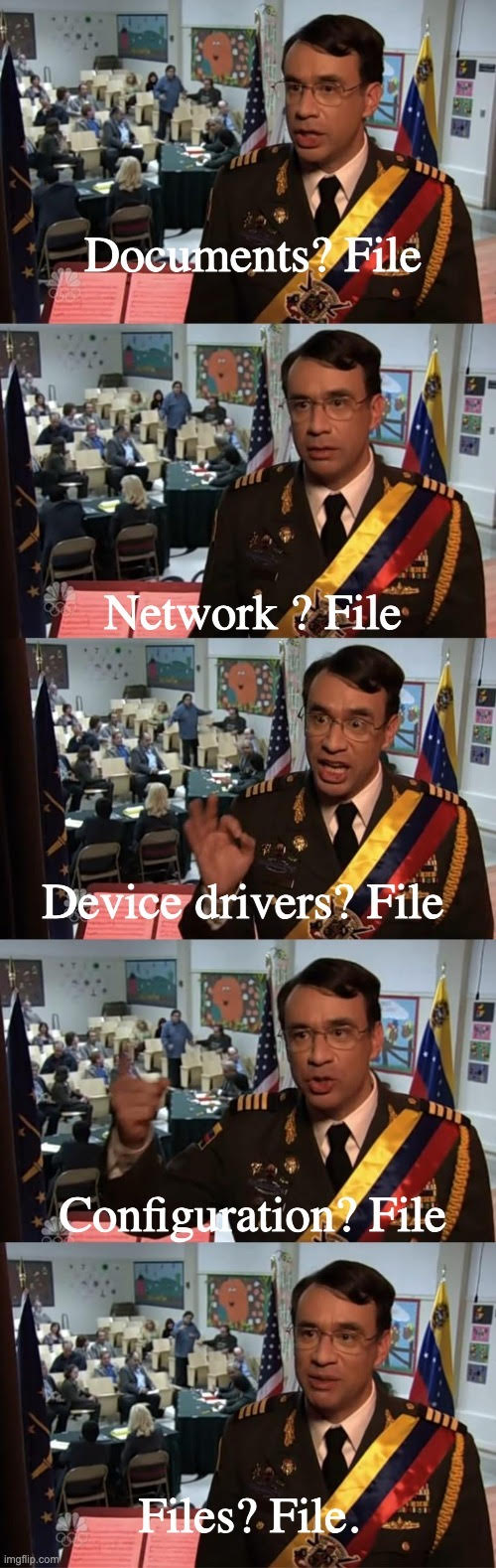 我们在这一基础之上构建了我们的世界。后来,我们在其他层面上(比如 API)看到了类似的契约,但文件依然无处不在。即使在基于 API 的系统中,文件仍然被用于配置系统、存储代码、提供资源等。