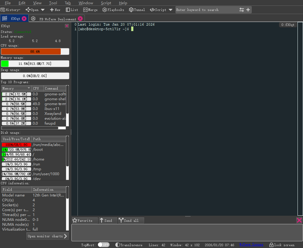 很久以前就有用户建议我模仿一下finalshell的一项远程监控的功能,但一直都没有想着去实现它,因为觉得这作为一个运维人员来说,不可能不懂这些命令,图表只会消耗无谓的一直消耗系统的资源。直到听到实施团队电话远程叫厂家帮助看一下监控界面时,才察觉原来这功能还可以这么玩,于是就简单实现了一个,后续有空再慢慢完善它。