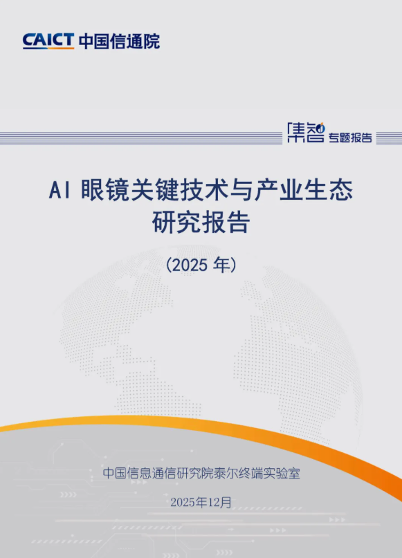 中国信息通信研究院(简称“中国信通院”)泰尔终端实验室近日发布了《AI眼镜关键技术与产业生态研究报告(2025年)》。