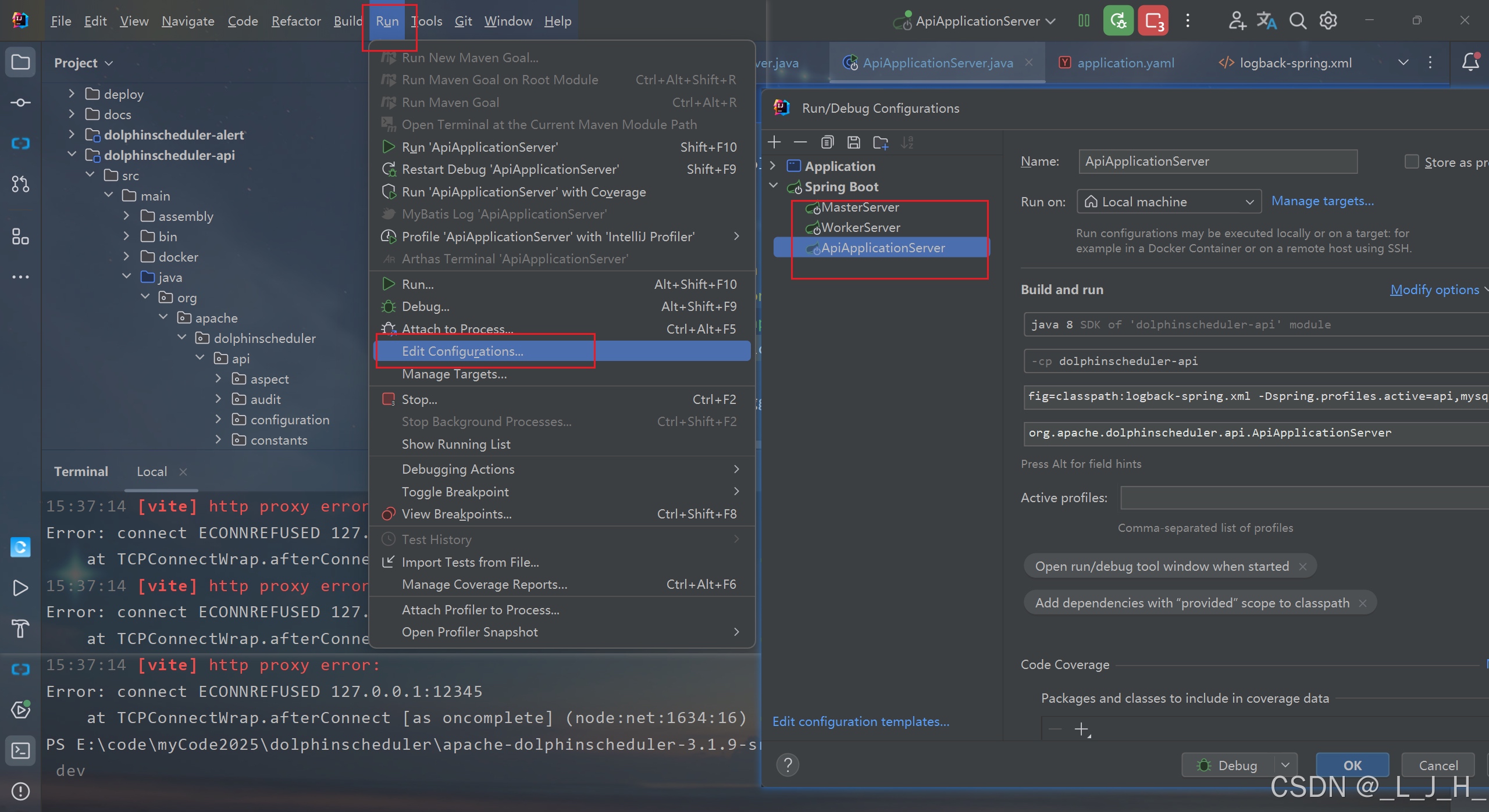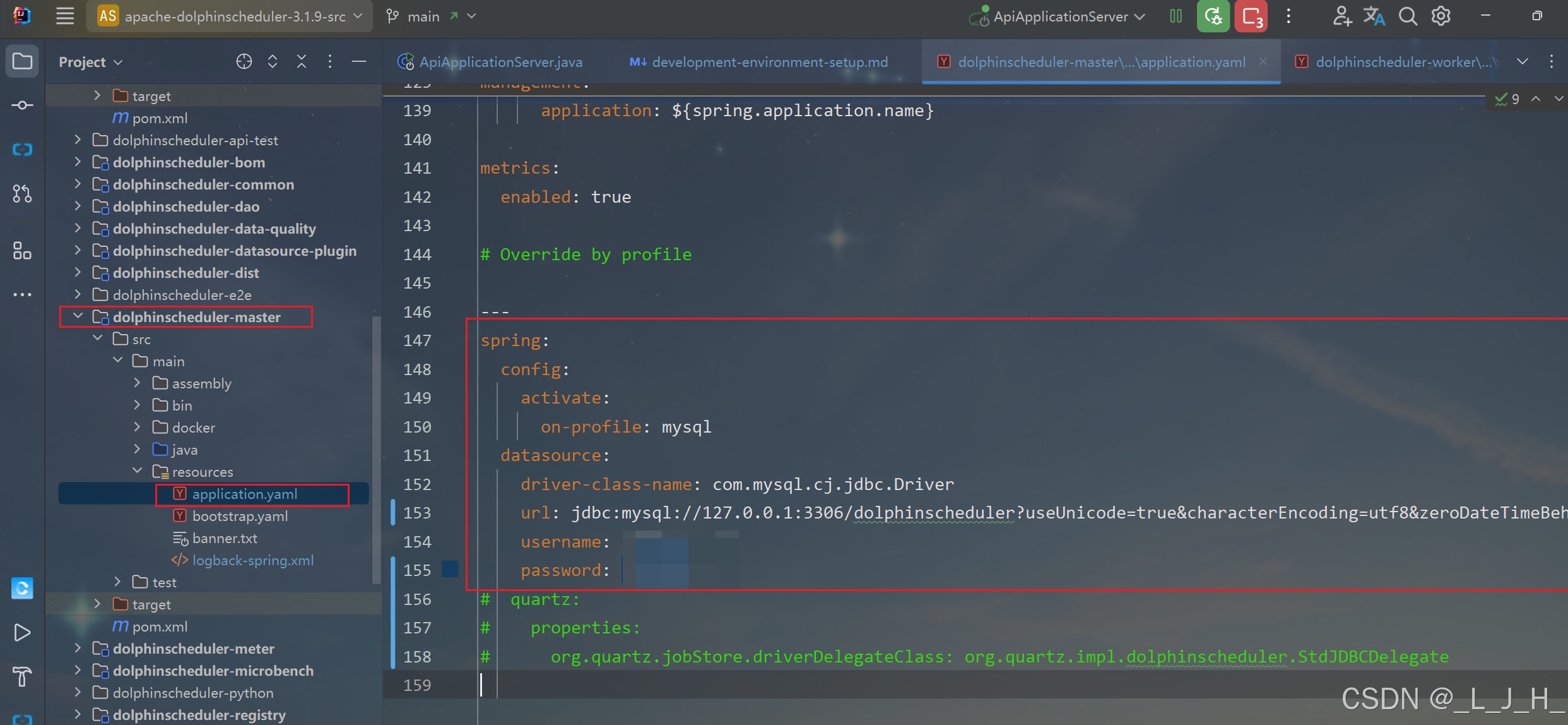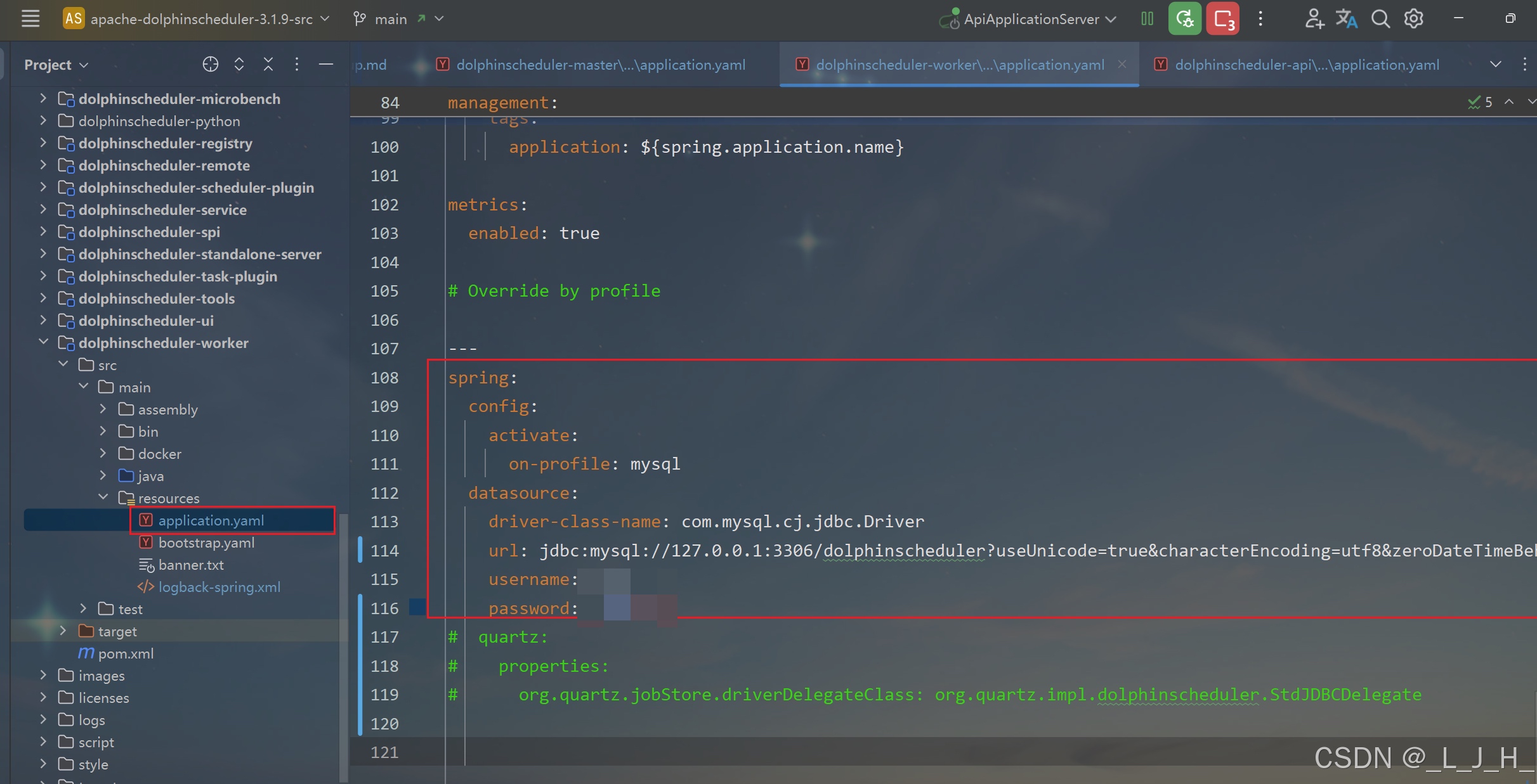 我们需要启动三个服务,包括 MasterServer,WorkerServer,ApiApplicationServer