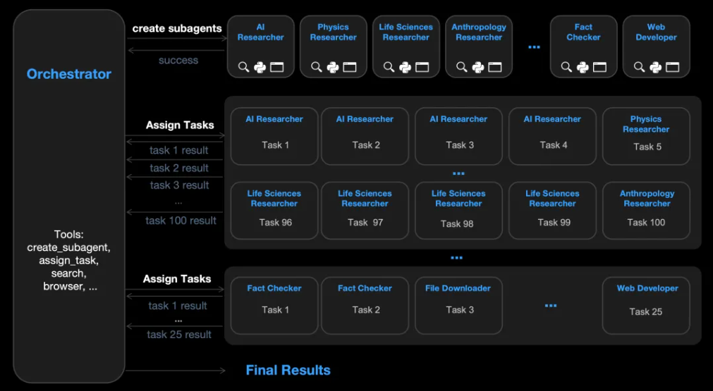 Agent 集群的规模化训练极具挑战。为此,项目团队重构了强化学习基建,并专门优化了训练算法,以确保能达到极致的效率和性能。目前,这一实验性功能已开启 Beta 测试,并将于近期逐步开放。